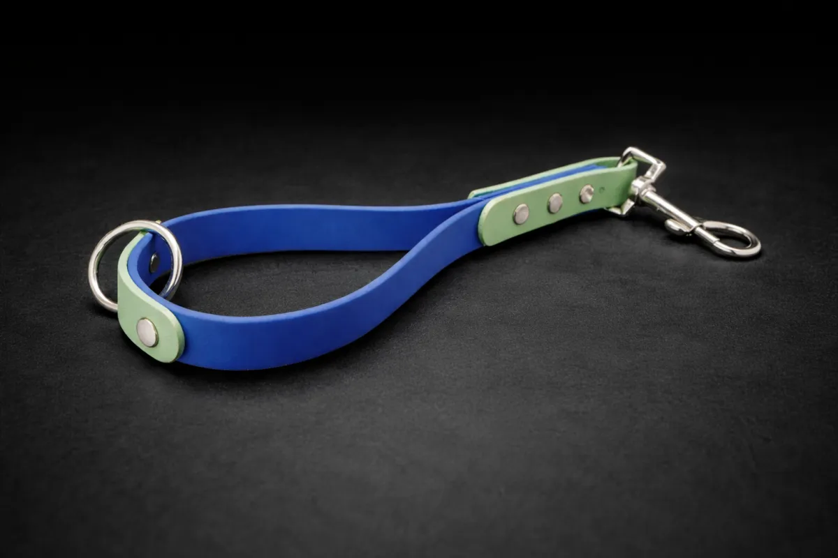 Just wipe it down with soap and water. Biothane doesn’t absorb dirt or odors, so it stays looking fresh much longer than fabric or leather. No oiling, no conditioner, no fuss — just rinse, dry, and you’re ready for the next walk.